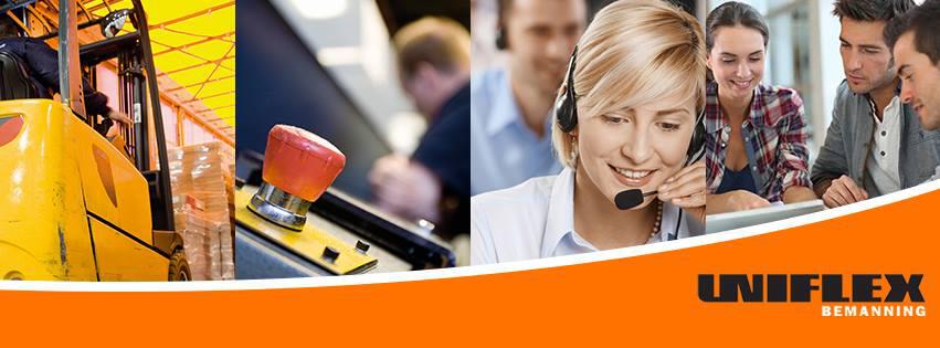 Uniflex Bemanning er en bemannings- og rekrutteringsaktør med over 50 kontorer i Norden. Vi er en auktorisert bemanningsbedrift og leier ut og rekrutterer innen bygg & anlegg, industri & lager, olje & gass, kontor & administrasjon, kundetjeneste og salg. Vi er sertifiserte innen kvalitet og miljø (ISO 9001 og 14001) samt er en Revidert Arbeidsgiver.
